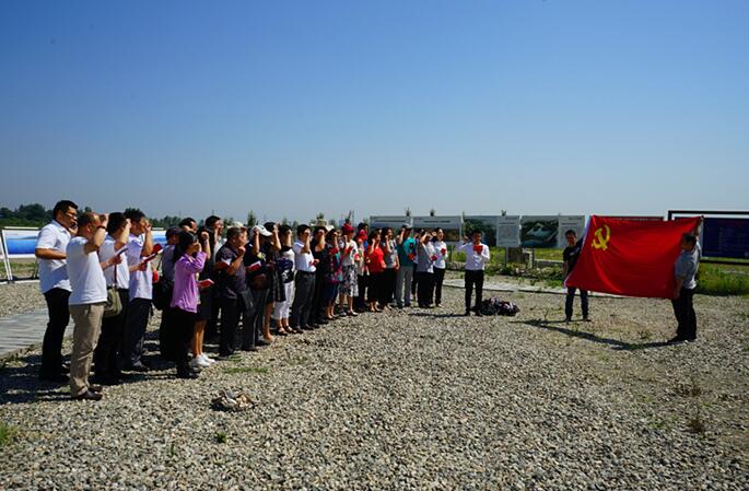 全體黨員在澇河渼陂水系生態(tài)修復(fù)施工現(xiàn)場重溫入黨誓詞