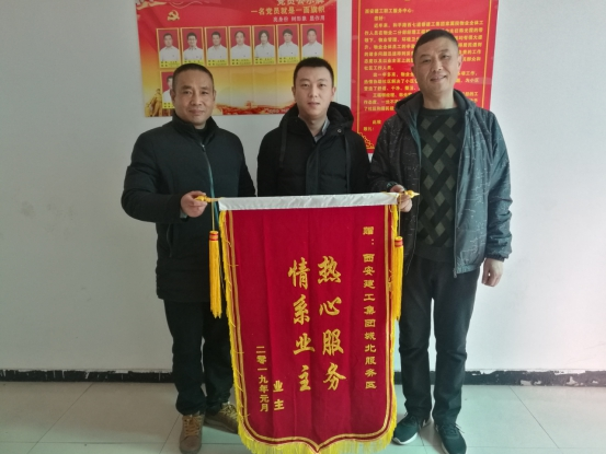 1月9日下午,北關高層小區(qū)的住戶將 “熱心服務,情系業(yè)主”的錦旗送到職工服務中心物業(yè)事業(yè)部,感謝服務中心物業(yè)事業(yè)部對住戶細致入微、盡心盡責的服務。