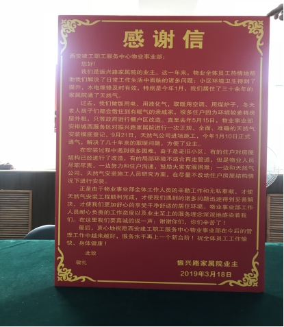 首頁(yè) > 新聞動(dòng)態(tài) > 中心動(dòng)態(tài) 振興路小區(qū)住戶代表贈(zèng)送錦旗和感謝信 2019-03-25 502 3月20日上午,振興路小區(qū)住戶代表給職工服務(wù)中心送來(lái)錦旗和感謝信。 評(píng)論 發(fā)表評(píng)論 全部評(píng)論 共{{commentCount}}條 {{i+1}}樓 {{rs.Msg_Sender}}{{rs.Msg_Datetime}} {{rs.Msg_Content}}