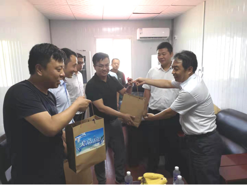 在五建花苑項目現(xiàn)場,中心黨委書記、總經(jīng)理吳宏利同志為駐守在一線的項目施工方五建集團、代建方城建集團等工作人員送去防暑降溫品,并與大家親切交談,詳細了解職工住房項目進展情況、項目人員工作狀況以及工地在高溫酷暑時節(jié)的應對措施等,感謝他們在各自崗位上的堅守與付出;同時動員各參建單位要本著“質量第一、品質優(yōu)先”的原則,克服困難、齊心協(xié)力,爭取早日讓廣大職工入住新家,為集團公司在涉改職工住房工作交上一份滿意答卷。隨后,吳總一行來到人事托管服務大廳,為大廳工作人員送上冰糖、毛巾、菊花茶等防暑降溫品后,吳總親切詢問一線職工在工作中遇到的困難和問題,耐心解答了大家的訴求和疑惑,同時要求中心責任部門要切實提高一線人員的勞動保護條件,最大限度地減少職工因高溫中暑造成的職業(yè)危害,切實營造良好和諧安全的工作氛圍。