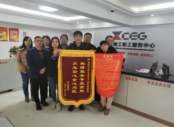 12月10日下午,職工服務(wù)中心托管職工宮慶順高興的將一面印有“熱情服務(wù)、專業(yè)高效,不忘初心、全心為民”的錦旗和感謝信送到了中心人事托管服務(wù)大廳,連連向大廳的工作人員表示感謝:“感謝你們能全心全意為職工著想,這次徹底解決了困擾我多年的工齡認定問題,服務(wù)中心真是我們托管職工的貼心人!這面錦旗你們受之無愧!”