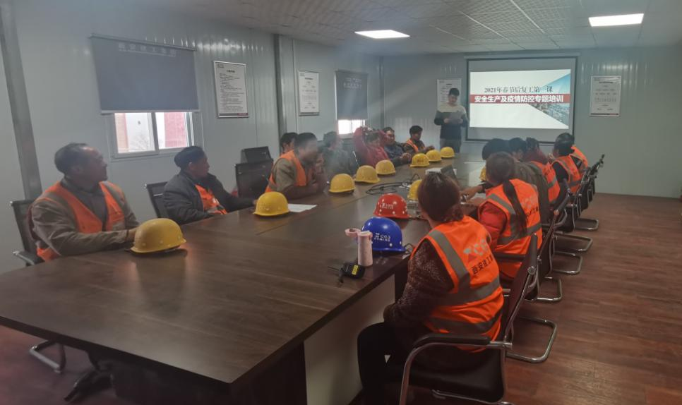 按照項(xiàng)目推進(jìn)計(jì)劃和安全生產(chǎn)工作要求,同時(shí)確保施工現(xiàn)場(chǎng)的疫情防控工作,綜合服務(wù)部積極與各參建單位協(xié)調(diào)溝通,全力推進(jìn)項(xiàng)目建設(shè)。施工單位提早準(zhǔn)備,為防止節(jié)后施工現(xiàn)場(chǎng)出現(xiàn)施工人員思想松、管理松、紀(jì)律松的現(xiàn)象發(fā)生,確?!叭说桨?、心到崗”,項(xiàng)目部提前制定了嚴(yán)密的復(fù)工方案,并及時(shí)組織開(kāi)展現(xiàn)場(chǎng)專題培訓(xùn),認(rèn)真組織開(kāi)展節(jié)后復(fù)工第一課“安全生產(chǎn)及疫情防控專題培訓(xùn)”活動(dòng)。代建方相關(guān)領(lǐng)導(dǎo)也親自赴現(xiàn)場(chǎng),做好帶班檢查工作,為五建花苑項(xiàng)目的復(fù)工生產(chǎn)奠定了堅(jiān)實(shí)的安全基礎(chǔ)。