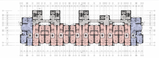 ↑ 1號(hào)樓戶型標(biāo)準(zhǔn)層平面