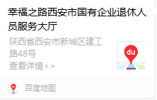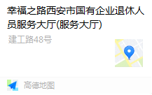 導(dǎo)航:可通過高德地圖、百度地圖搜索“幸福之路西安市國有企業(yè)退休人員服務(wù)大廳”,具體位置信息截屏如下: