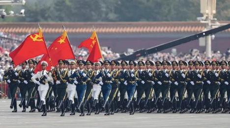 閱兵式上,空中梯隊組成“80”字樣,昭示偉大抗戰(zhàn)精神永恒不朽??罩凶o(hù)旗方隊、徒步方隊、裝備方隊、戰(zhàn)旗方隊、空中梯隊等威武雄壯。腳步鏗鏘,英姿颯爽,鐵流滾滾,銳不可當(dāng)。各種新式兵種及軍隊裝備,充分展示了我軍在新形勢下強(qiáng)大的軍事防御及戰(zhàn)斗力,